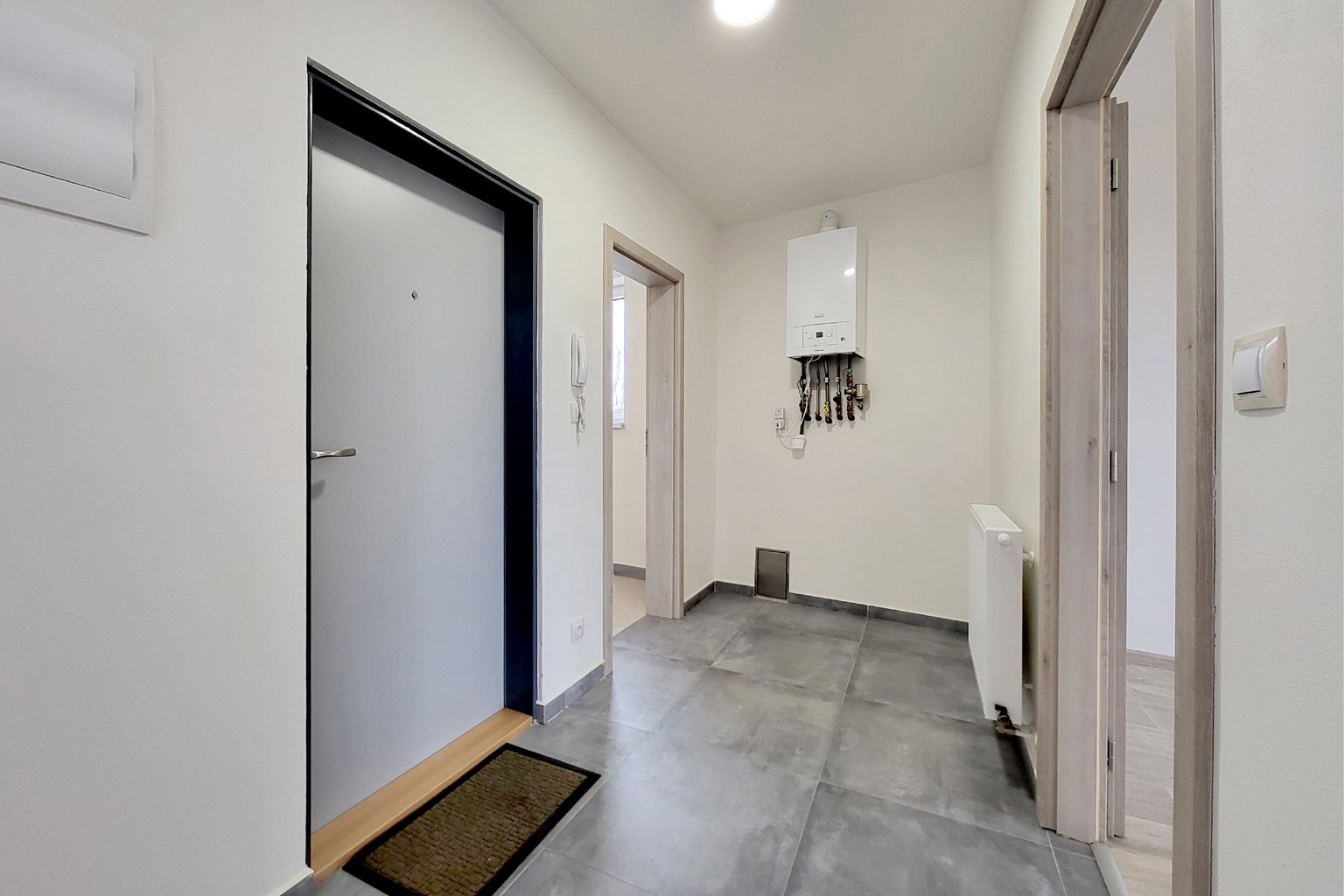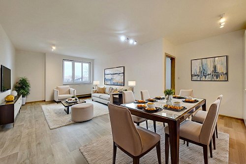 Byt prošel rozsáhlou rekonstrukcí, která zahrnovala novou kuchyňskou linku, kvalitní podlahy a moderní koupelnu vybavenou vanou KALDEWEI. Dveře Masonite a velkoformátové obklady dodávají interiéru elegantní vzhled a vysokou úroveň komfortu. Topení a ohřev vody zajišťuje spolehlivý kondenzační kotel Baxi, což přispívá k nízkým nákladům na energie.